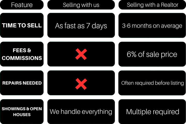 With no fees, no commissions, and no need to worry about repairs or showings, you can avoid the stress and uncertainty of the traditional real estate market.